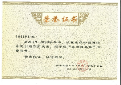 四年来,161191班委们始终秉承"以人为本,以班为纲"的治班理念,坚持以它作为班级管理的指导思想。班干部均能以全责为己任,密切协作,不仅按要求完成了学院、分院系安排的各项任务,而且能够创造性的开展富有特色的活动。班委会工作最大的特点就是有计划,有制度,有总结。本科四年,161191班获得了2019-2020学年优秀班集体标兵、校级“五四红旗团支部”、2021年度校级先进班集体标兵等荣誉称号。