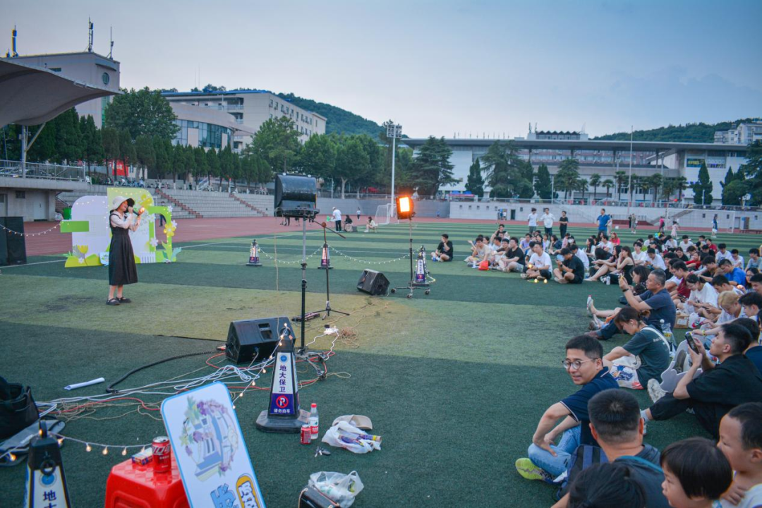 各位同学和老师依次上场,唱着离别不舍的歌,诉说着地大生活的美好。他们的歌声或温柔或坚定或悠扬,伴随现场观众的呼声与灯光一起,在操场萦绕,留下了许多难忘的回忆:一首《花海》勾起同学们的青春回忆,引发全体合唱;自作曲《懂爱》让同学们体会到父亲与女儿间爱的羁绊;学姐们的返场演出《太聪明》展现出地大毕业生们对学校的怀念与不舍......最后的师生大合唱把现场气氛推向高潮,展现地大师生的风貌,尽显青春靓丽的姿态。