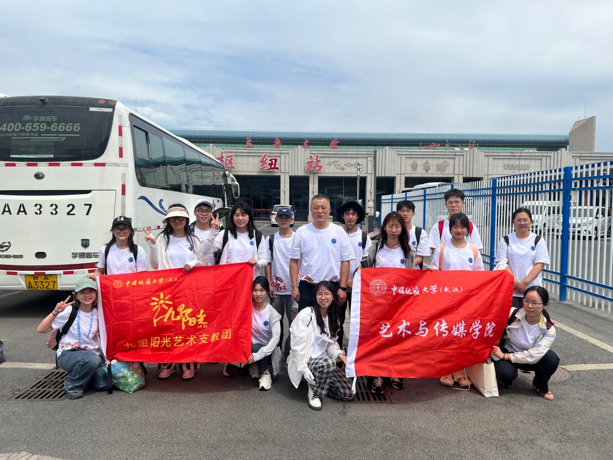 九里阳光艺术支教团为贯彻落实习总书记给中国农业大学科技小院同学们的回信精神,在支教活动第二个十年之初,把课堂学习和乡村实践紧密结合起来,在学院党委副书记边建华和学工组辅导员单湉艺、曾戈晖的带领下,团队一行16人在7月4日启程前往新疆生产建设兵团第六师红旗农场学校,开展暑期艺术支教活动。
