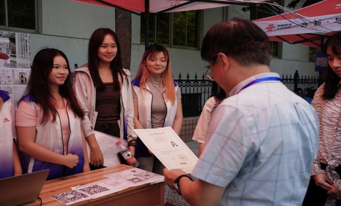 ”的牌子引导着新生去到迎新摊位,随后在老师们的协助下完成学籍信息录入以及个人资料的收集等,并耐心回复了家长们有关在校学习和生活的各类疑问。