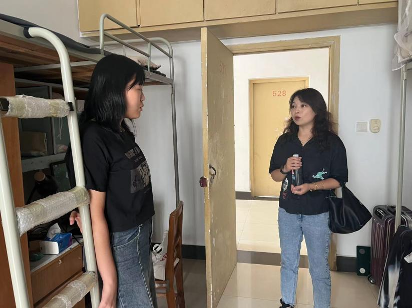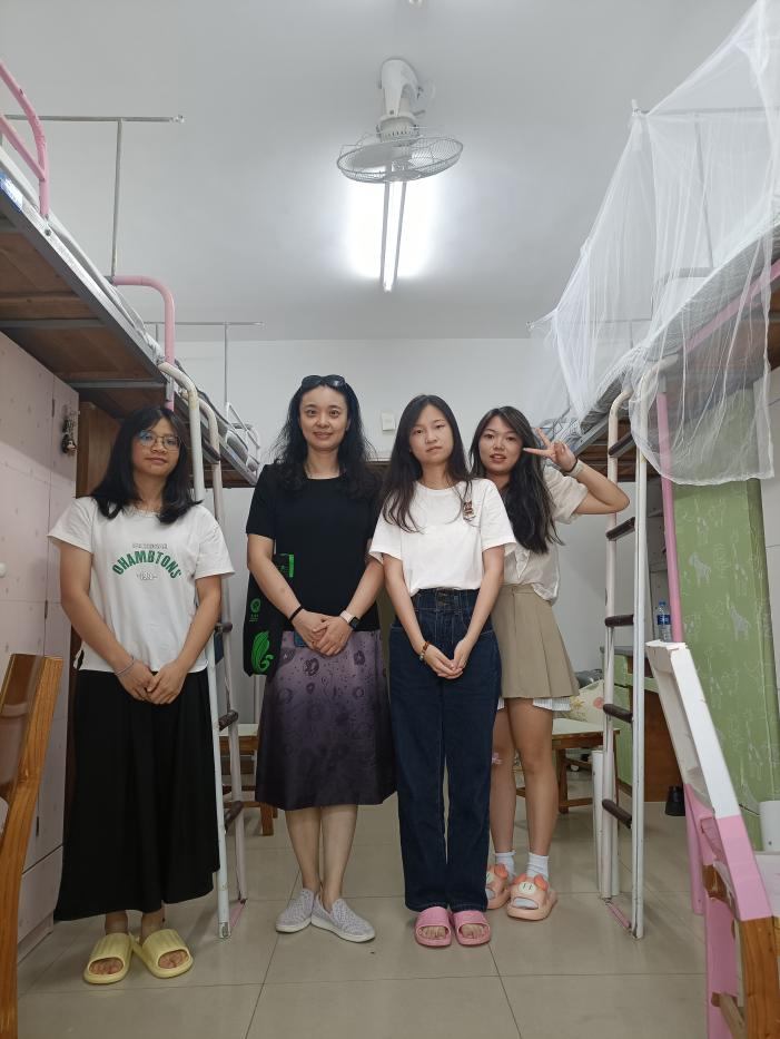 党委书记晋曦,院长何清俊,副院长张梅珍、袁玥、彭静,党委副书记边建华,学工组辅导员单湉艺、陈习良,兼职辅导员杨滢、包颜铭、于梦涵走访了学院研究生和本科生新生宿舍,亲切看望并慰问了学院2023级新生。
