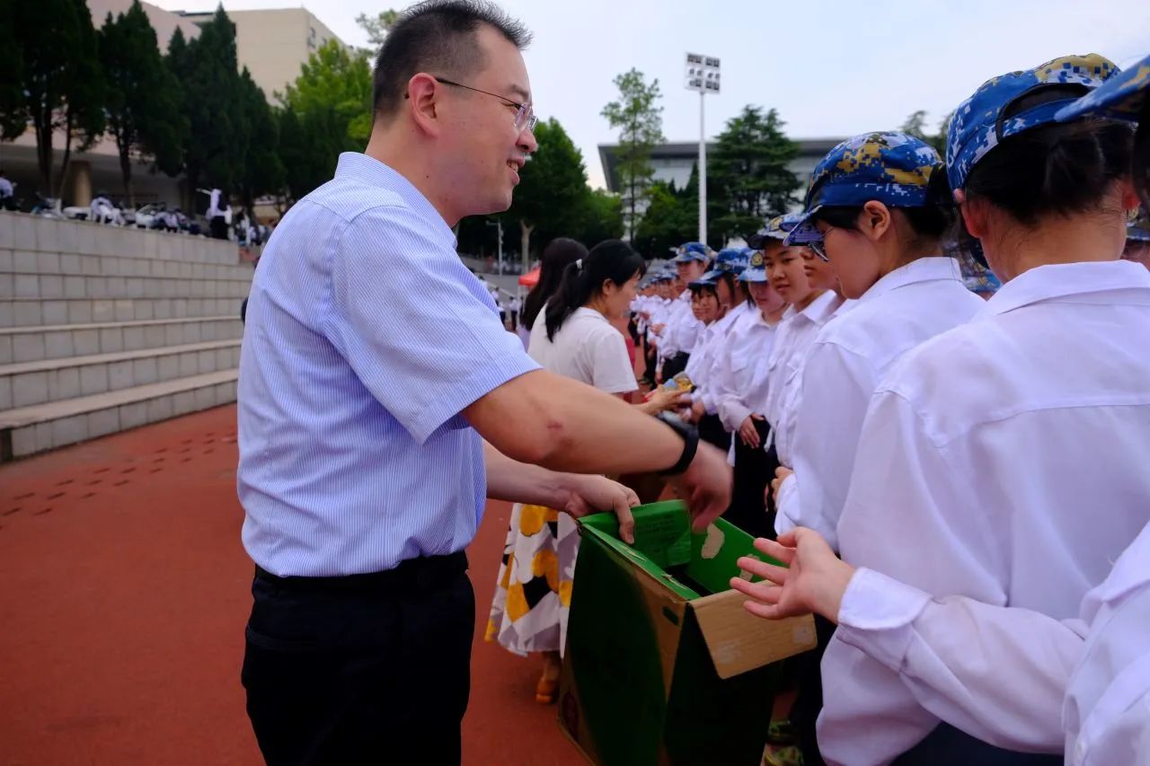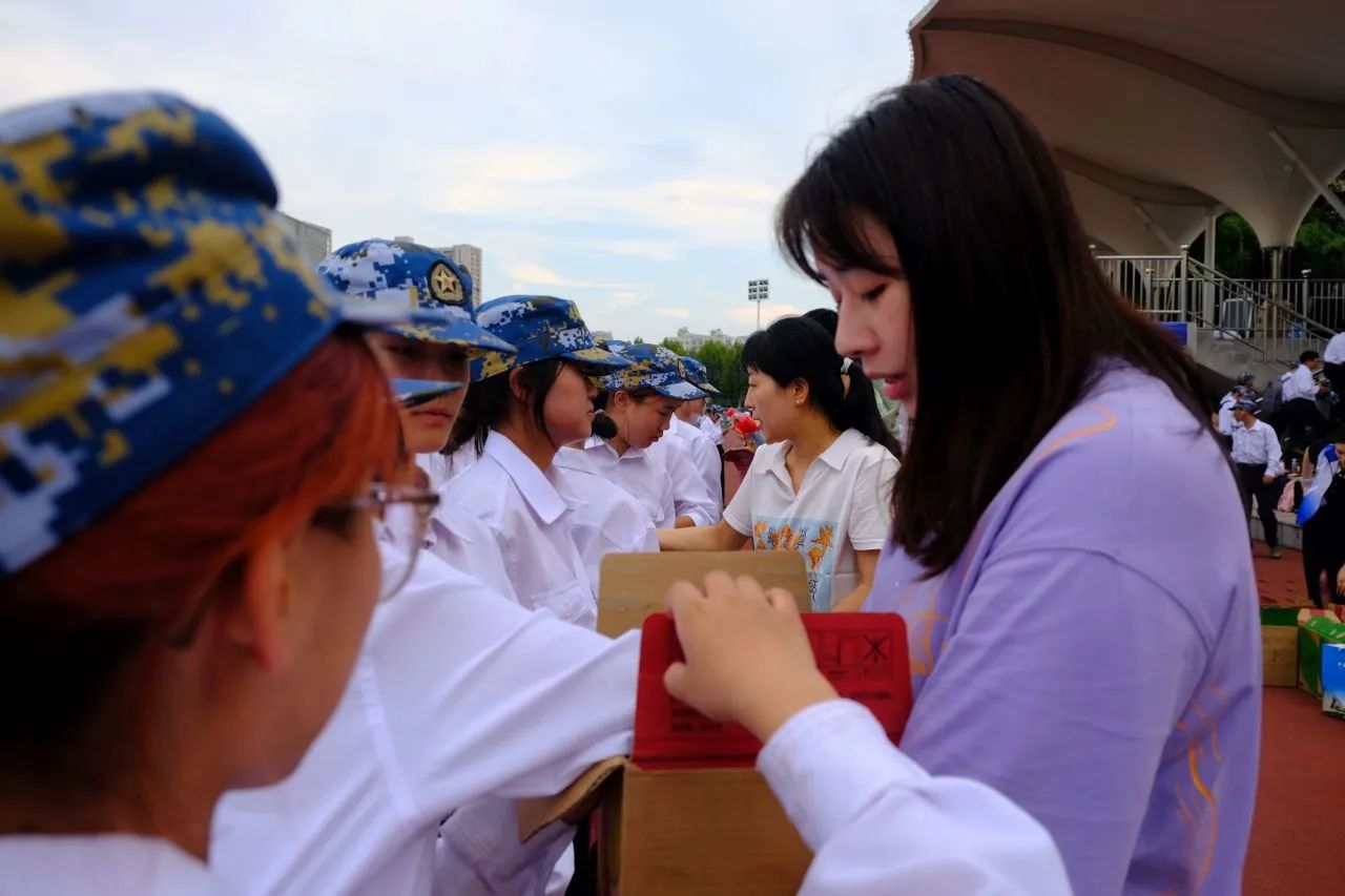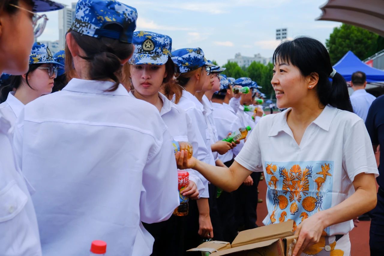 最后,各位老师为同学们分发饮料。清凉的物资,暖心的问候,让艺媒学院新生感受到了院领导的关怀。