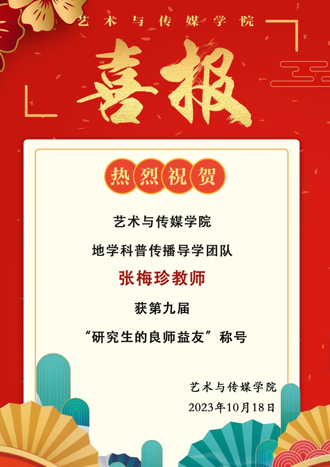 喜报 | 热烈祝贺蜜桃网 张梅珍教师荣获第九届“研究生的良师益友”称号