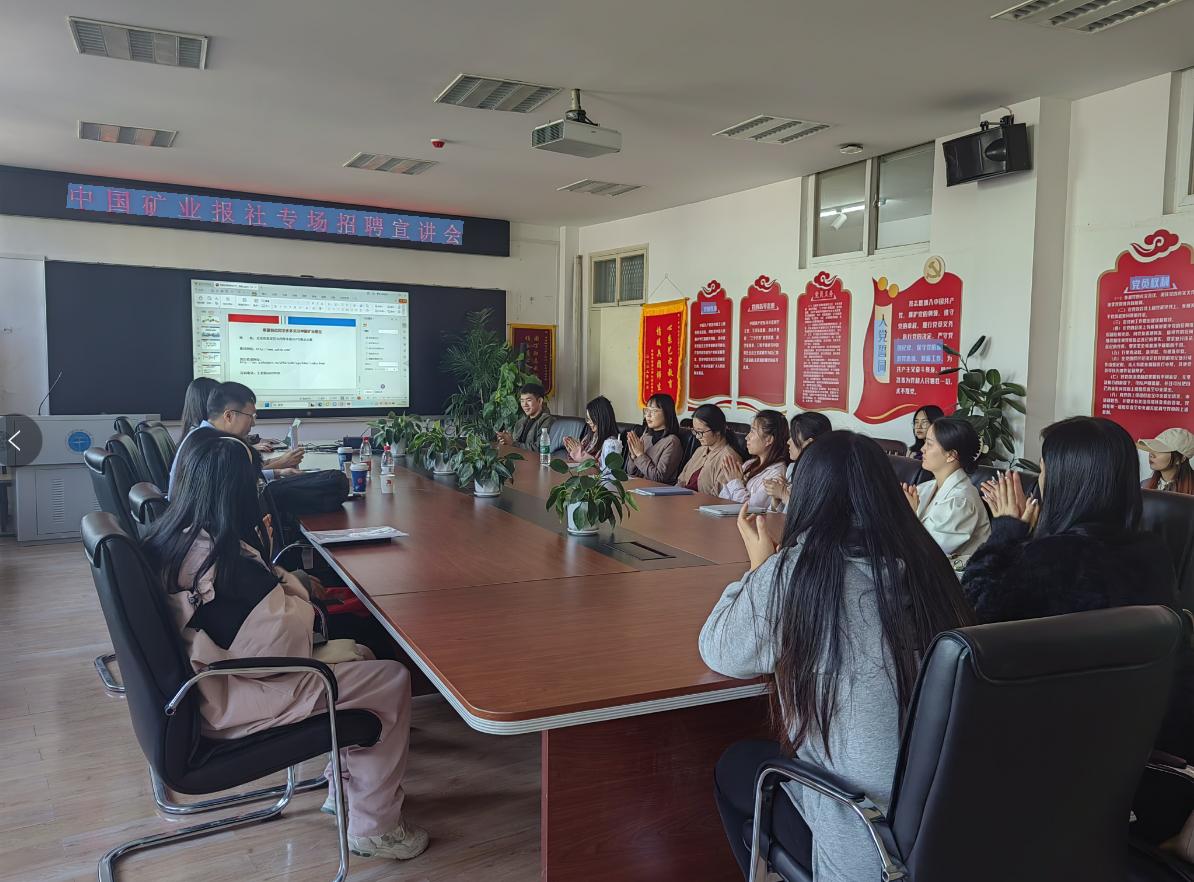 然后,老师们与参会学生展开交流。同学们就中国矿业报社的用人需求、招聘流程、工作内容以及薪资待遇等内容进行提问,进一步了解中国矿业报社的整体情况、未来发展规划以及融媒体相关政策。