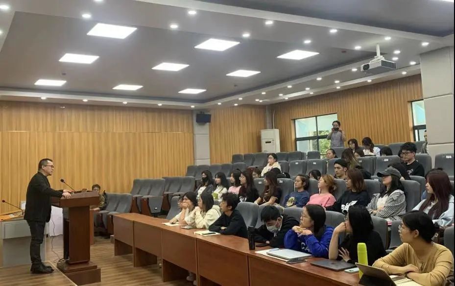 1104报告厅顺利举行。讲座应杨喆副院长邀请,主讲人系中国出版协会书籍设计艺术委员会副秘书长、第四届中国设计大展及公共艺术专题展策展人、深圳亚洲铜设计顾问有限公司创始人及创意群总监韩湛宁。韩老师以场景理论的文化价值观中的三个主维度“真实性”“合法性〞和“戏剧性〞 为切入点,以海报为媒介,以作者亲自参与的城市文化项目设计案例,特别是海报设计如何作为媒介、定义和系统引领,来呈现设计驱动社会文化品牌的思考与探索,从而参与到社会文化的价值塑造。
