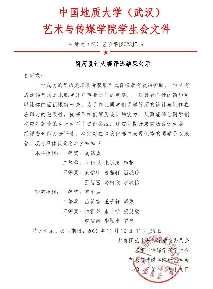 公示 | 简历设计大赛评选结果公示