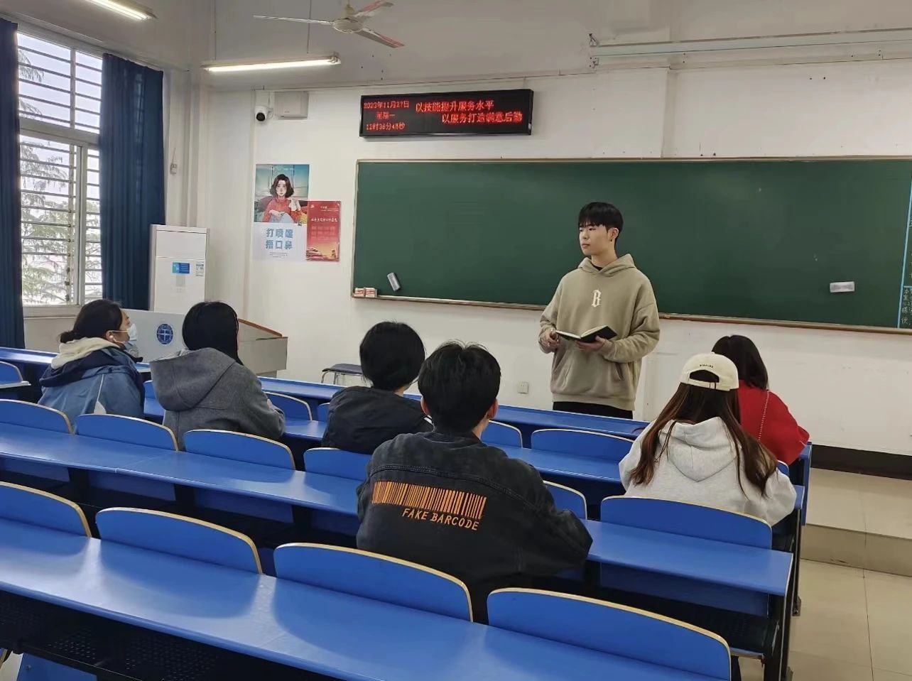 2023年11月27日中午12:30,中国地质大学 (武汉) 蜜桃网 学生会在北综楼312教室召开会议,学生会主席团及各部门部长参加了本次会议,学生会主席团成员余骥飞、青年志愿者协会理事邵梦华共同主持了本次会议,各部门汇报了上一周工作,并对近期在工作上的问题进行了讨论和解决。