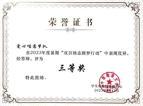 此外,郭嘉鑫、张婷婷同学还参加了“双百励志圆梦行”活动,她们走访了辽宁、孝感多地,为经济困难生送去温暖,带去学校的关怀,进一步提高了我校精细服务,精心育人的水平。