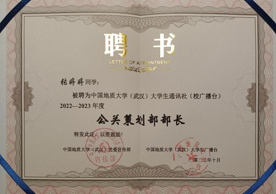 此外,161212班的同学们也在多个校级、院级组织中担任负责人,彰显了积极向上的昂扬姿态。罗烽同学担任学院组织部部长,并在2022-2023年度学院团委及学生会部门五四评优考核中获评优秀部长;张婷婷同学担任学校广播台公关策划部部长;张曼莎同学担任学院青年志愿者协会理事长;邓语晨同学担任乒乓球协会部长。