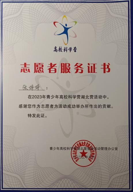 其中邓语晨同学在学校七十周年校庆期间,担任了校庆宣传组骨干志愿者;张婷婷同学作为2023年暑期宣传志愿者负责人组织开展2023年全国高校科学营地大分营的相关工作,并作为优秀志愿者被推荐至中国科学技术协会青少年科技中心;刘玮佳同学在课余时间,参与“山中花儿”线上支教工作,为贫困山区的孩子送去知识的曙光。