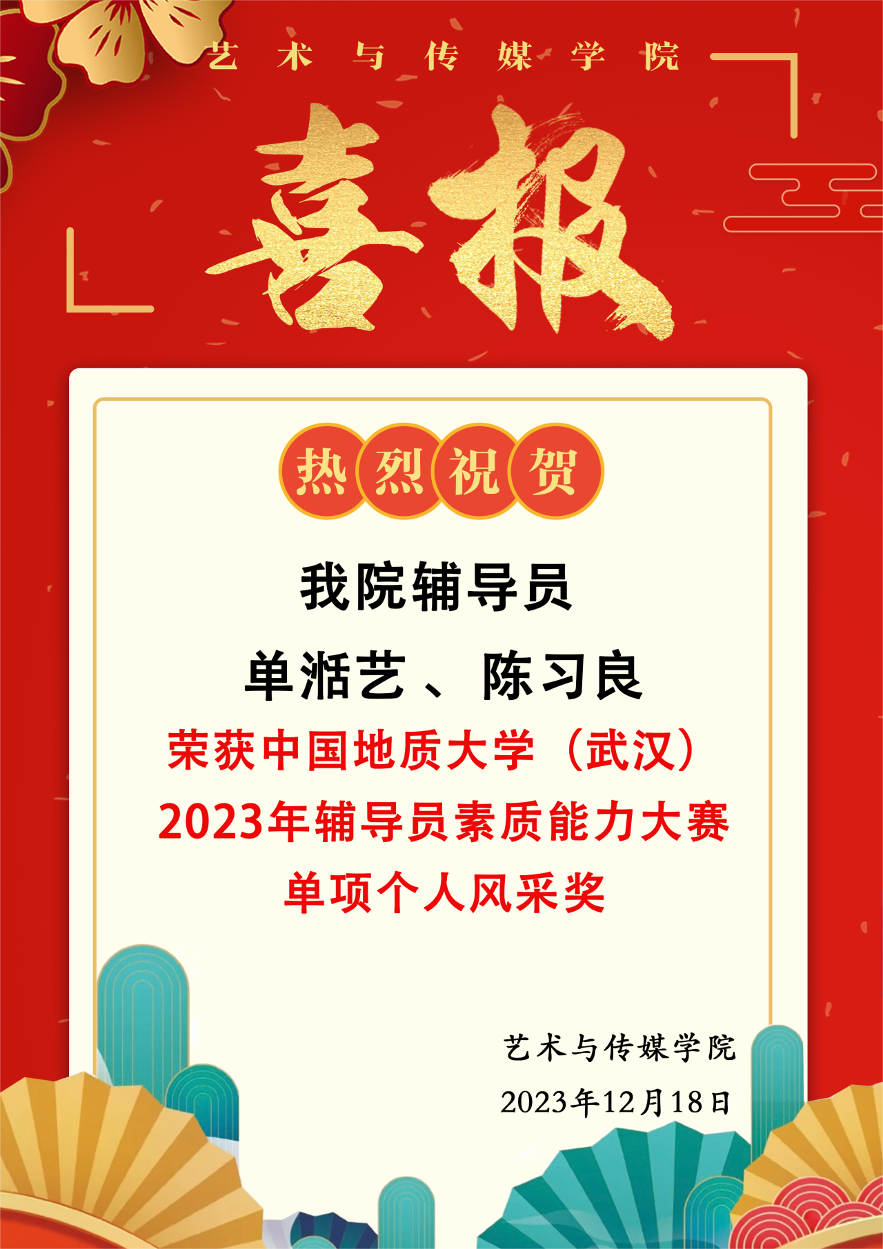 喜报 | 热烈祝贺蜜桃网 辅导员单湉艺、陈习良荣获蜜桃网 2023年辅导员素质能力大赛单项个人风采奖