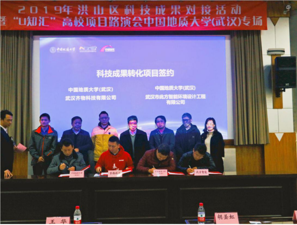 专场中,在王华副校长出席见证下,与我校签约了相关科技成果转化项目。截止目前与学校联合开发项目已有五次,并获得11项国家专利,6项软件著作权,现已是武汉市科技“小巨人”企业,湖北省科技型中小企业。此方作为从事城市公共空间交互体验全案设计方面的公司,在设计类企业中少有的获得了国家高新技术企业的授牌及40万政府奖励。