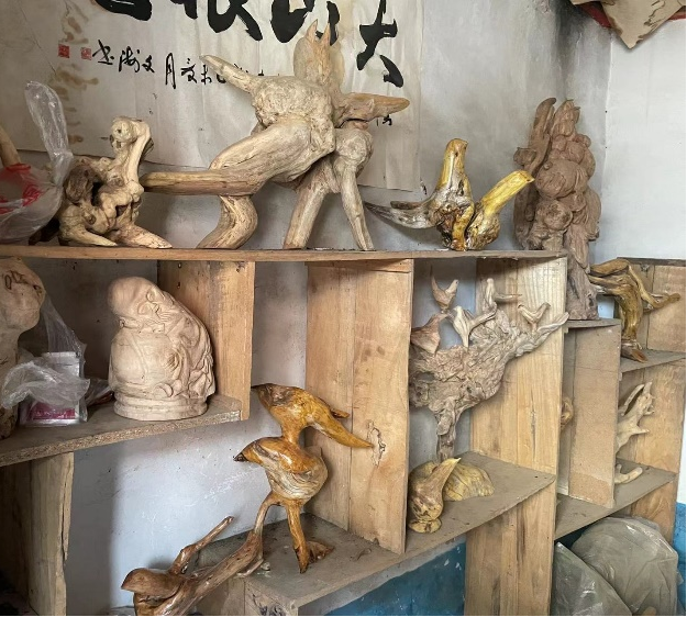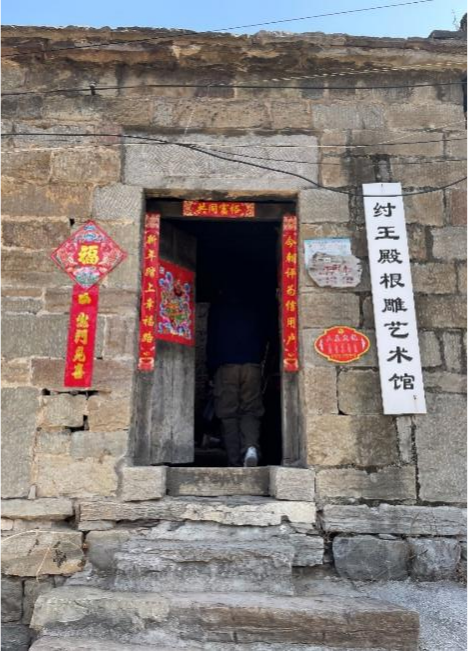 我们绕着上纣王殿村转了两三圈,在途中看到了一个根雕文化馆,里面展示着牛国喜爷爷的根雕作品,栩栩如生。大家都认为这是一个非常不错的设计节点。沿着土地庙往上的主路上,还有许多可以设计的节点,这让我们非常兴奋。