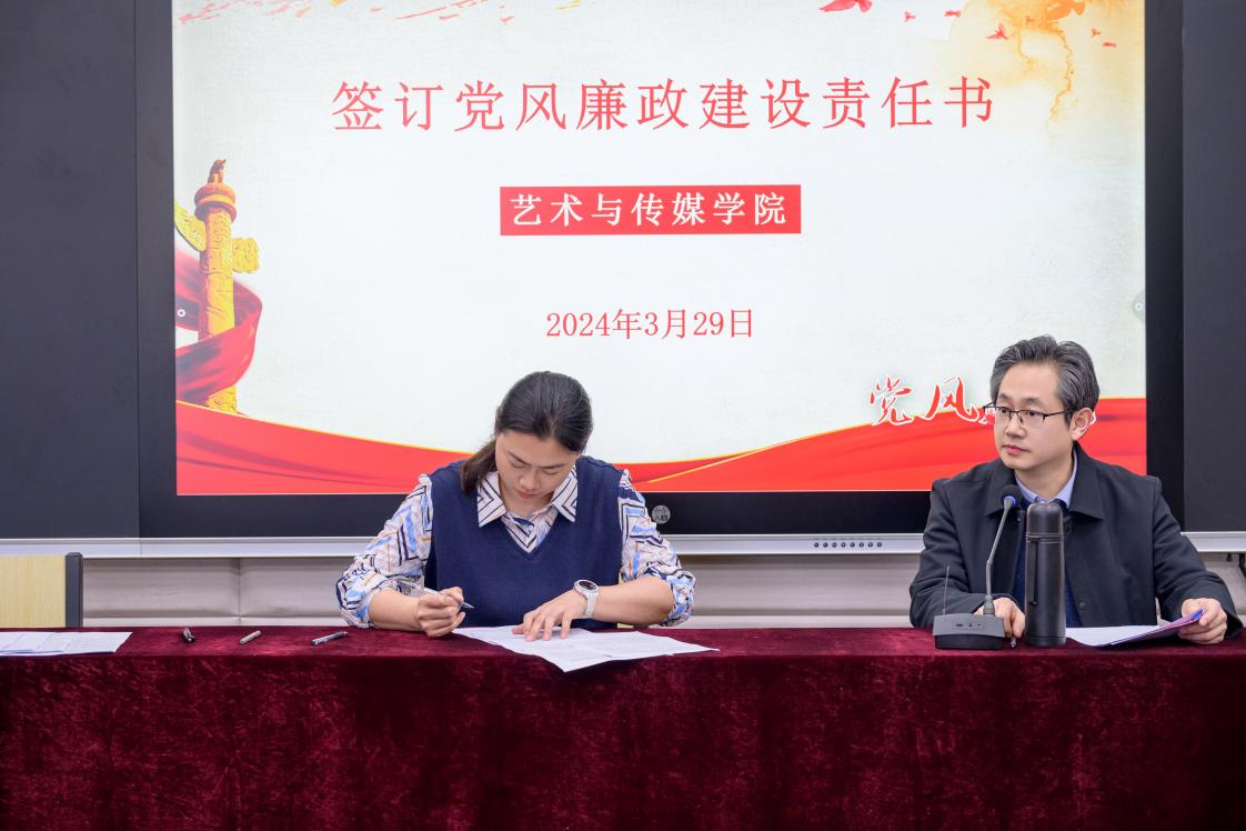会前,全体教职员工签订了《教职工思想政治与师德行为承诺书》,表示要严格遵守《新时代高校教师职业行为十项准则》《教育部关于高校教师师德失范行为处理的指导意见》等规定,认真履行人民教师立德树人光荣职责,不介路远、不辍前行,努力做一位有理想信念、有道德情操、有扎实学识、有仁爱之心的好老师。