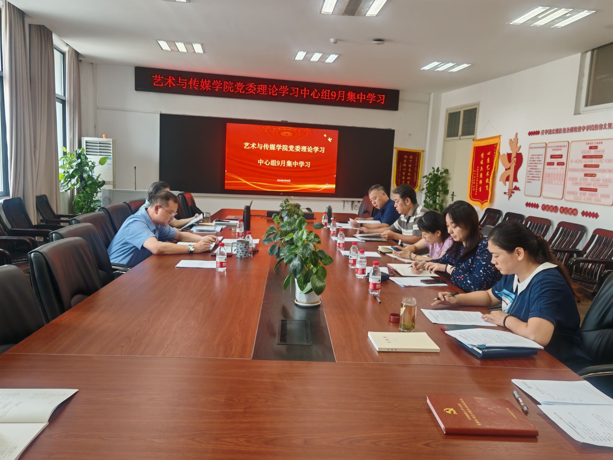 在1209会议室召开党委理论学习中心组集中学习会,专题学习习近平总书记给中国传媒大学师生回信精神和学校本科教育教学审核评估有关政策要求,就并做好相关的贯彻落实工作进行研究部署。学院党委委员和纪委委员参加会议。党委书记晋曦主持会议。