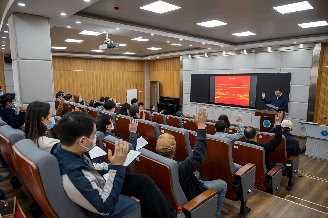 第十届教职工代表大会暨第十九届工会代表大会代表、推荐选举第十九届工会委员会委员候选人暨第十届教代会执行委员会候选人初步人员的通知》。通过举手投票的方式,与会教职工审议通过了代表候选人建议名单,审议通过了大会选举监票人、计票人建议名单。