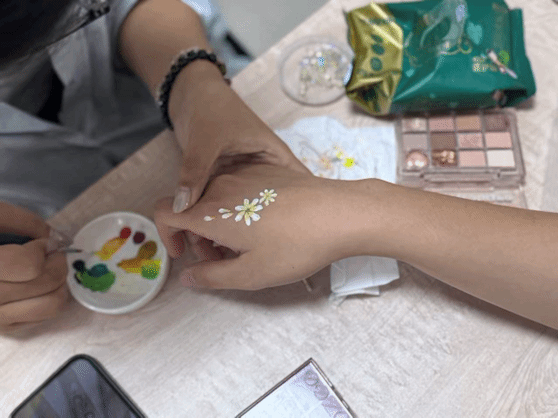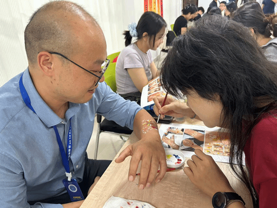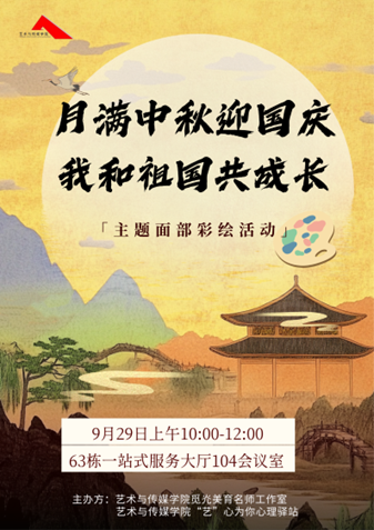 觅灮美育名师工作室、“艺” 心为你心理驿站承办的“月满中秋迎国庆,我和祖国共成长”主题面部彩绘活动在西区63栋一站式服务大厅104会议室顺利举行。觅灮美育名师工作室成员周若君、仝宇、高玮泽、闫莹颖、张笑钏、邵梦华,学工组辅导员曾戈晖,兼职辅导员曹彬彬现场参与,与学校师生共同沉浸于色彩与心灵的创意对话。