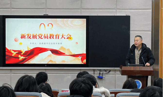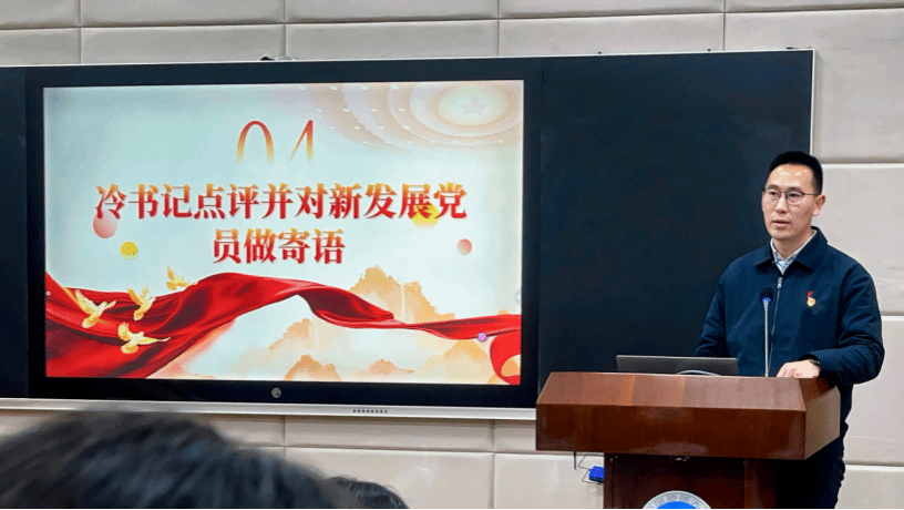 大会最后,学院党委副书记边建华为新发展党员讲授了一堂深刻的党风党纪教育课。以“以案明纪、警钟长鸣”为主题开展警示教育,以学校纪委整理的19个学生党员违规违纪典型案例为切入点,剖析违纪行为危害,重申党纪刚性约束。他强调,全体学生党员须将纪律要求内化于心、外化于行,自觉遵规守纪;党员要率先示范,坚定政治立场、恪守学术诚信、规范日常言行,维护纪律严肃性。同时告诫全体新党员,要以案为鉴、警钟长鸣,紧绷纪律之弦、严守纪律红线,在网络与现实中谨言慎行、表里如一,维护党员形象;鼓励其积极投身党建工作、服务师生,在实践中磨砺党性。最后,边书记勉励新党员,既要在组织上入党,更要在思想上、行动上入党,以党员标准严格要求自己,将个人理想融入国家发展大局,在学习工作中发挥先锋模范作用。
