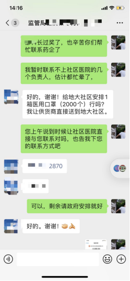 然后开始和接收方联系对接事宜,截止到2月3日下午16:00共联系到了15家医院和单位。18:30所有酒精安全分完。