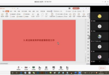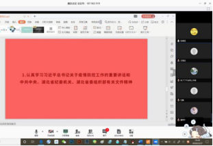 在会议最后,楼丹同志进行发言,说到:希望各位党员同志多关注疫情发展动态,会后继续认真学习相关文件精神、继续在学习强国关注相关新闻,不畏艰险,无私奉献,坚定必胜信心,主动担当作为。同时,在开学期间要自律线上学习,做到听课不停学。最后,希望大家一定要注意身体,不能抱有侥幸大意的心理,减少不必要的出门。