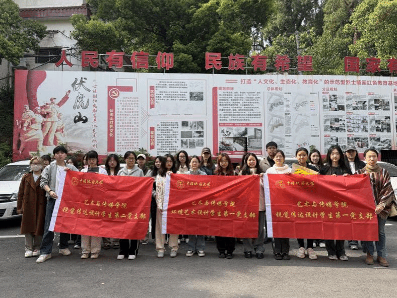 视觉传达设计学生第一党支部、视觉传达设计学生第二党支部以及环境艺术设计学生第一党支部的全体党员和入党积极分子,共同前往伏虎山烈士陵园,开展了“缅怀先烈志,共筑中华魂”的陵园祭扫活动。以青春之名,致敬英魂;以青春之誓,赓续血脉。